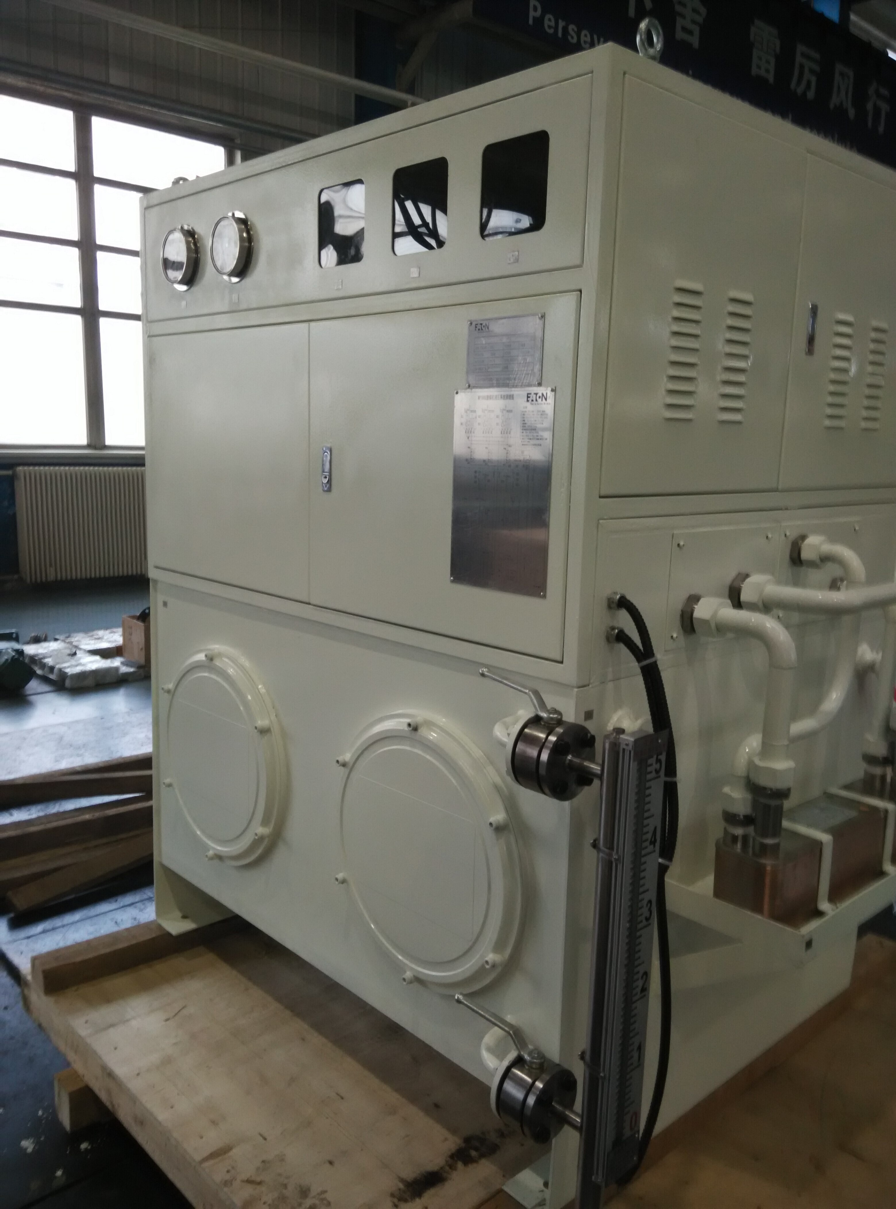 我公司生產(chǎn)的中速磨煤機(jī)液壓系統(tǒng)可實(shí)現(xiàn)磨煤機(jī)的變加載,加載力與磨煤機(jī)的給煤量匹配。由于在該系統(tǒng)中采用了比例控制技術(shù),實(shí)現(xiàn)了無(wú)級(jí)調(diào)壓,瞬間抬輥和落輥,減少磨盤(pán)震動(dòng),使得磨煤機(jī)出煤的顆粒更加均勻,節(jié)省能量,提高了磨煤機(jī)的工作效率。保證了產(chǎn)品的性能,滿足了不同客戶的需求,伴隨著我國(guó)電力和世界電力事業(yè)的發(fā)展,我公司生產(chǎn)的中速磨煤機(jī)液壓系統(tǒng),已遍布國(guó)內(nèi)各大電廠及化工企業(yè),部分產(chǎn)品已出口到國(guó)外。2014年為美國(guó)伊頓公司生產(chǎn)的磨煤機(jī)液壓及潤(rùn)滑系統(tǒng),其質(zhì)量達(dá)到國(guó)際同類產(chǎn)品水平。